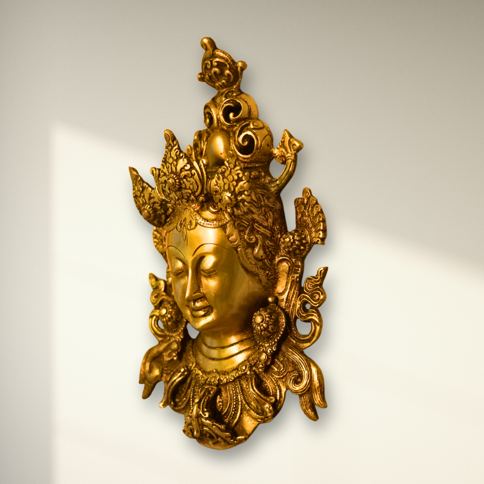 Bring home the blessings and grace of the Divine Mother with this exquisitely crafted Maa Tara Wall Bust. Made with a radiant brass finish, this piece captures the serene expression and intricate detailing of Maa Tara, one of the most revered forms of the Divine Feminine in Hindu and Buddhist traditions. Whether placed in a meditation space, living room, or entryway, it exudes peace, protection, and positive energy.